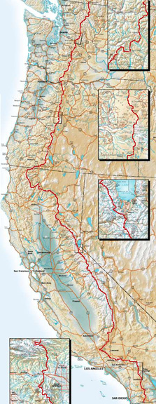 I have a page for each of the five segments of the trail (Southern California, the High Sierras, Northern California, Oregon, Washington) as well as an additional page with brief reflections.